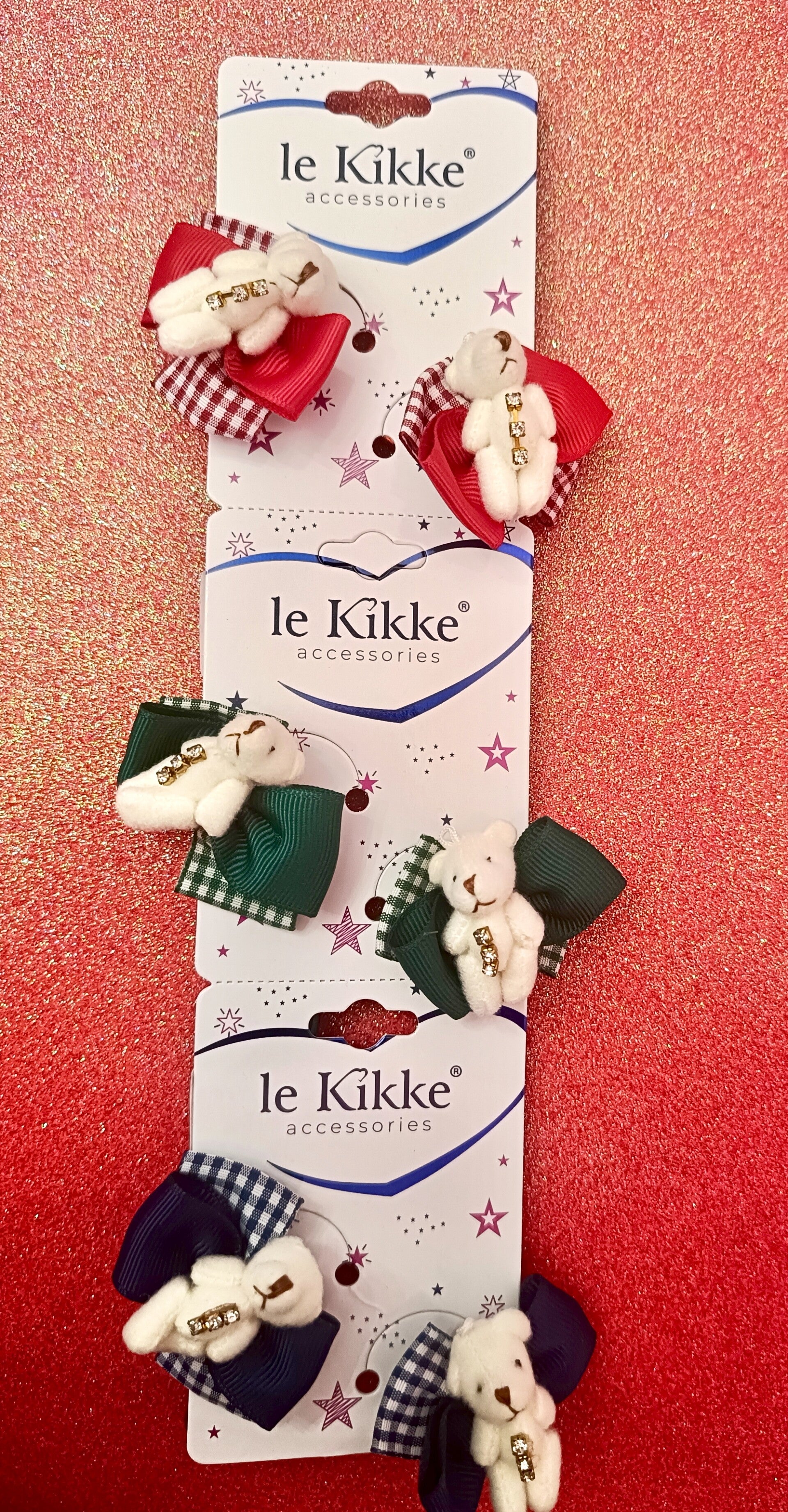 - Elastici per capelli da bimba di Le kikke.La particolarità di questi elastici e che in rilievo c'è un vero peluche di orso piccolino impreziosito dagli strass sulla pancia. Questo elastico è di colore rosso ma è possibile averlo in diverse varianti di colore:verde, blu, grigio e marrone. Questi elastici si vendono a coppia.