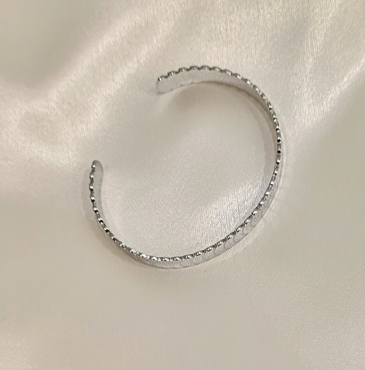 Bracciale ad anello rigido in acciaio di colore Silver; pratico e bello per un look essenziale. Della stessa linea è possibile averlo anche nella variante Gold.