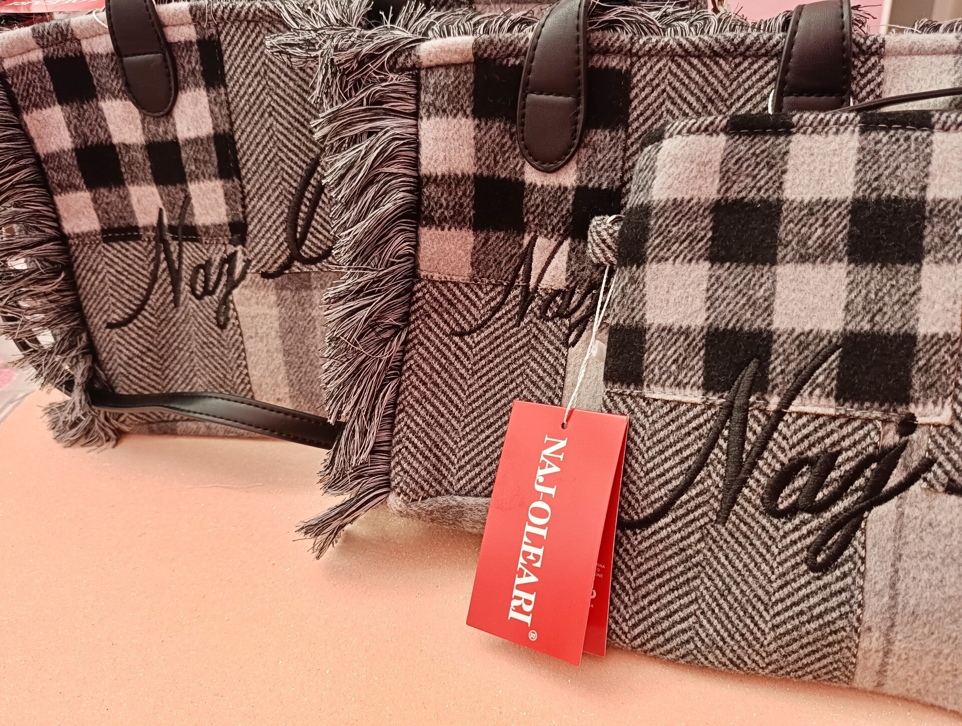 Borsa con stampa scozzese con dei giochi di colore alternati dal nero, al grigio, al bianco.È rifinita con delle frange che riportano gli stessi colori della stampa rendendola particolare e trendy.È dotata anche della tracolla e si puó acquistare sia singolarmente che l' intero set in modo tale da avere dei pezzi unici che possono essere sempre utili per diverse occasioni. Della stessa linea ci sono altre varianti di colore: il verde, il fucsia e il blu.